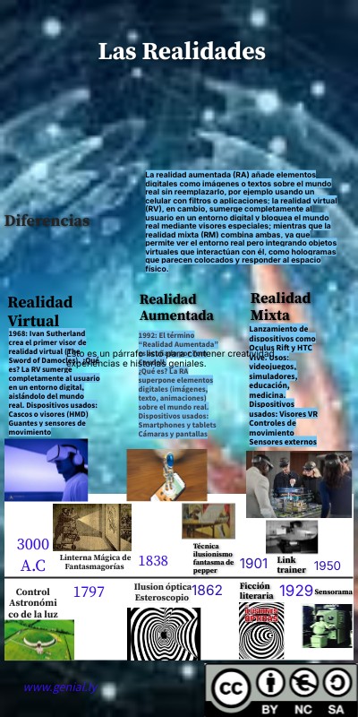 La realidad aumentada (RA) añade elementos digitales como imágenes o textos sobre el mundo real sin reemplazarlo, por ejemplo usando un celular con filtros o aplicaciones; la realidad virtual (RV), en cambio, sumerge completamente al usuario en un entorno digital y bloquea el mundo real mediante visores especiales; mientras que la realidad mixta (RM) combina ambas, ya que permite ver el entorno real pero integrando objetos virtuales que interactúan con él, como hologramas que parecen colocados y responder al espacio físico.