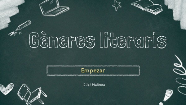 Els gèneres literaris són categories que serveixen per classificar les obres segons les seves característiques comunes: forma, contingut, estil i intenció.Ajuden a entendre millor els textos i a organitzar la gran varietat d’obres que existeixen.