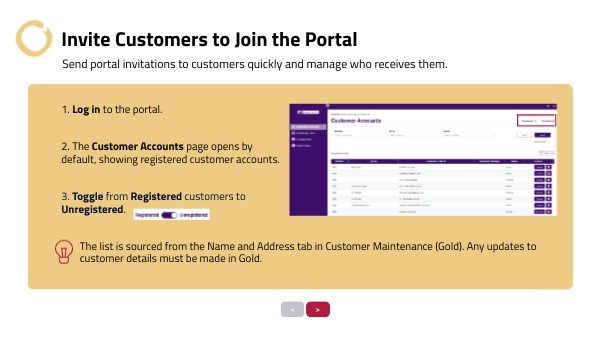 Send portal invitations to customers quickly and manage who receives them.