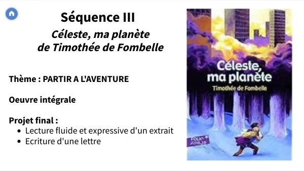 Thème : PARTIR A L'AVENTURE Oeuvre intégraleProjet final :