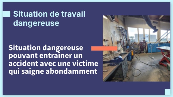Situation de travail dangereuse pouvant entraîner un accident avec une victime qui saigne abondamment