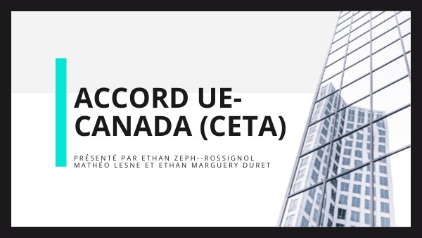 Présentation de l’accord CETA et ses objectifs Avantages économiques pour l’UE et le Canada Critiques et oppositions politiques Impacts pour les entreprises et secteurs concernés Discussion : La France peut-elle influencer la mise en œuvre du CETA ?