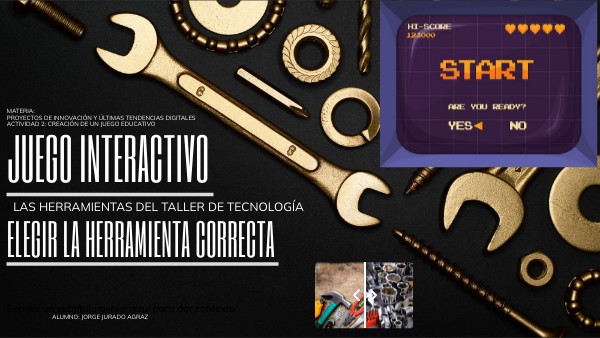 A continuación iniciaremos un juego interactivo sobre preguntas y respuestas. El juego consiste en un conjunto de preguntas sobre herramientas del Taller de Tecnología, las respuestas están formadas por imágenes de herramientas. En cada caso, selecciona la opción que tú creas correcta.