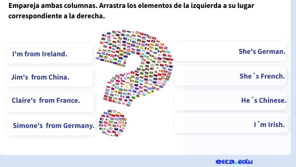 Empareja ambas columnas. Arrastra los elementos de la izquierda a su lugar correspondiente a la derecha.