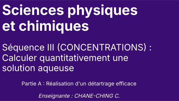 Séquence III (CONCENTRATIONS) : Calculer quantitativement une solution aqueuse