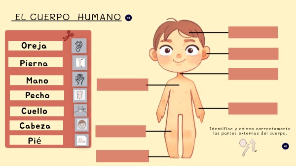 Identifica y coloca correctamente las partes externas del cuerpo.