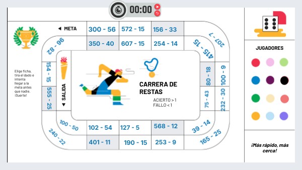 Elige ficha, tira el dado e intenta llegar a la meta antes que nadie. ¡Suerte!
