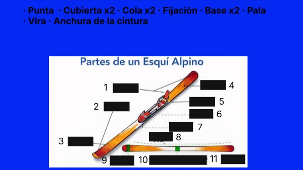 · Punta · Cubierta x2 · Cola x2 · Fijación · Base x2 · Pala · Vira · Anchura de la cintura
