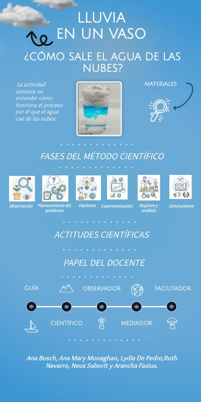 La actividad consiste en entender cómo funciona el proceso por el que el agua cae de las nubes.
