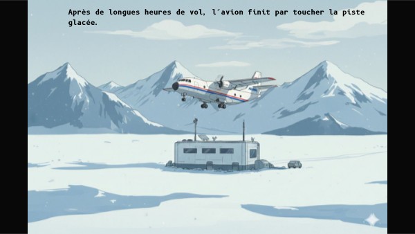Après de longues heures de vol, l’avion finit par toucher la piste glacée.