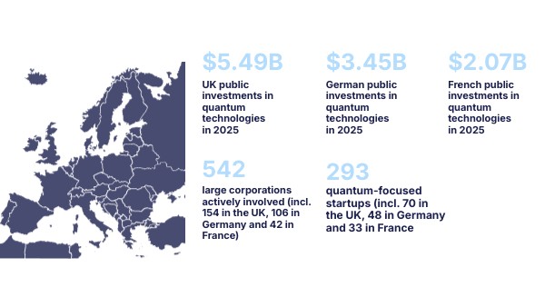 quantum-focused startups (incl. 70 in the UK, 48 in Germany and 33 in France