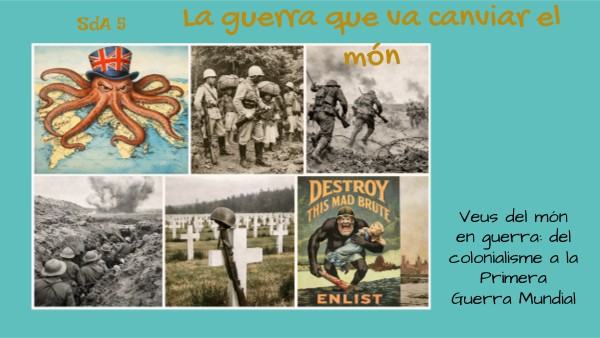 - Situar cronològicament els grans processos de finals del segle XIX i inicis del XX.Entendre que la Primera Guerra Mundial no és un fet aïllat, sinó part d’un context de canvis polítics, econòmics, socials i tecnològics.Preparar el terreny conceptual per entendre que el colonialisme no com un tema tancat, sinó com a procés.