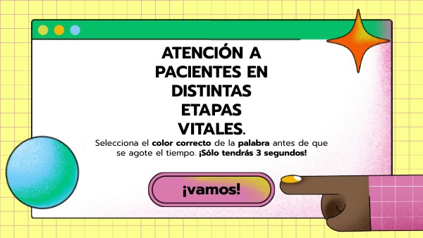 Selecciona el color correcto de la palabra antes de que se agote el tiempo. ¡Sólo tendrás 3 segundos!