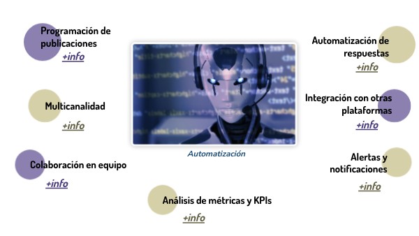 Gestión simultánea de varias redes sociales (Facebook, Instagram, Twitter, LinkedIn, TikTok, entre otras) desde una única interfaz, lo que reduce la carga operativa y mejora la coherencia del mensaje.