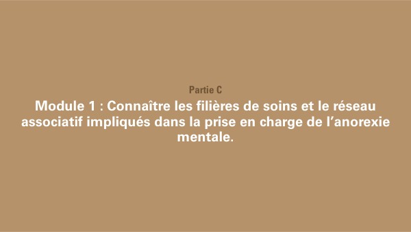 Module 1 : Connaître les filières de soins et le réseau associatif impliqués dans la prise en charge de l’anorexie mentale.