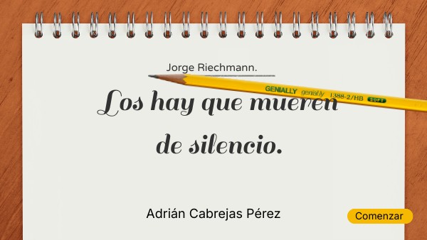El poema que voy a comentar se titula “Los hay que mueren de silencio”, escrito por Jorge Riechmann Fernández, uno de los poetas españoles contemporáneos más comprometidos socialmente. En este poema, el autor reflexiona de forma crítica sobre distintas actitudes humanas ante la verdad, la palabra y la sociedad actual.