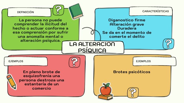 La persona no puede comprender la ilicitud del hecho o actuar conforme a esa comprensión por sufrir una anomalía mental o alteración psíquica.
