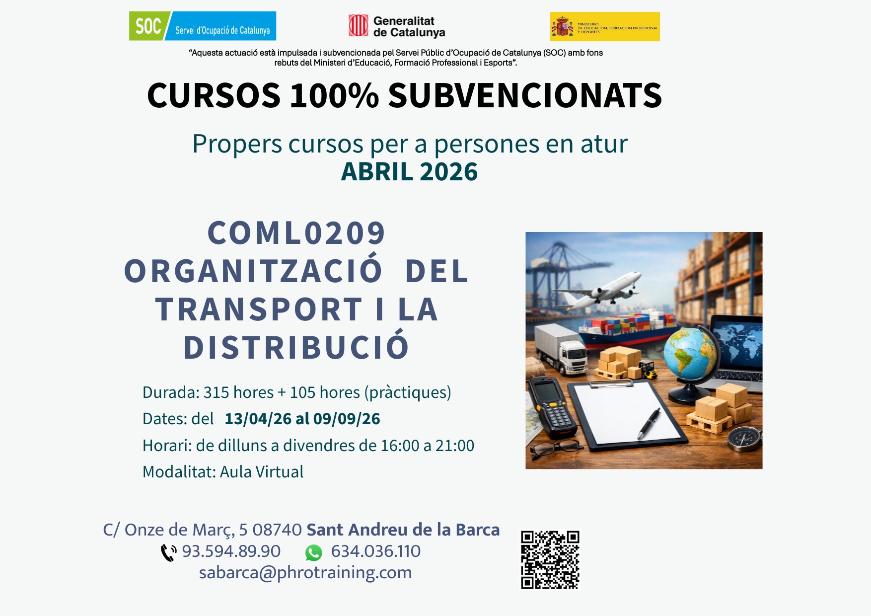 Durada: 315 hores + 105 hores (pràctiques) Dates: del 08/04/26 al 31/07/26 Horari: de dilluns a divendres de 16:00 a 21:00 Modalitat: Aula Virtual