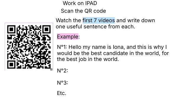 Terminer le travail commencé en classe: Regarder 7 vidéos sur le site (lien sur pronote) et noter une phrase de chaque.