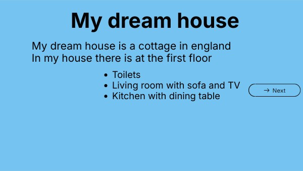 My dream house is a cottage in englandIn my house there is at the first floor