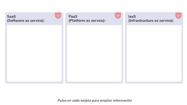 Prescinde de máquinas físicas, accediendo a los servicios virtuales a través de la red. Ejemplos son Microsoft Azure o AWS (Amazon Web Services).