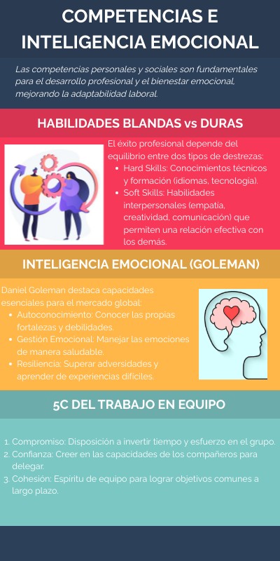 Las competencias personales y sociales son fundamentales para el desarrollo profesional y el bienestar emocional, mejorando la adaptabilidad laboral.