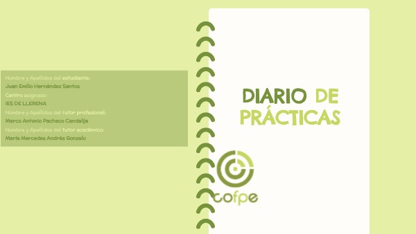 Nombre y Apellidos del estudiante: Juan Emilio Hernández SantosCentro asignado:IES DE LLERENA Nombre y Apellidos del tutor profesional:Marco Antonio Pacheco CandalijaNombre y Apellidos del tutor académico:María Mercedes Andrés Gonzalo
