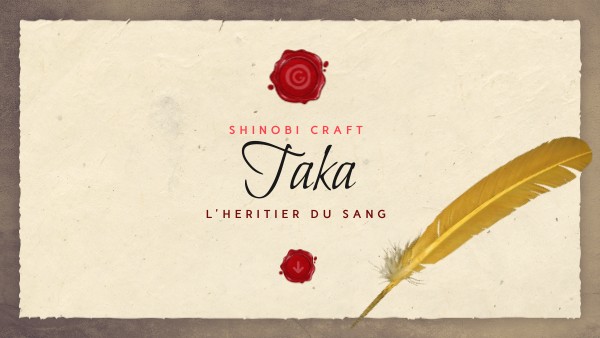Lorsque sont père mourut, Taka firent une promesse enfantine mais solennelle : régner un jour sur les océans du pays de l'eau à deux, non pas en conquérants, mais comme héritiers du sang et de la volonté de Tak Momochi. Pour graver cette parole dans ça chair, ils se firent tatouer le un symbole : une spirale sanguine qui s’élance avant de se scinder en deux. Sur Taka, elles plongent vers des formes plus sombres et ancrées, rappelant la force des profondeurs. Sont tatouages est qu'une moitiés d’un même dessin, un fragments d’une même mer. Ainsi, ça promesse n’est jamais oubliée : que le sang ou la mort dominent, Taka avance comme le seul guerrier faces a l'océans