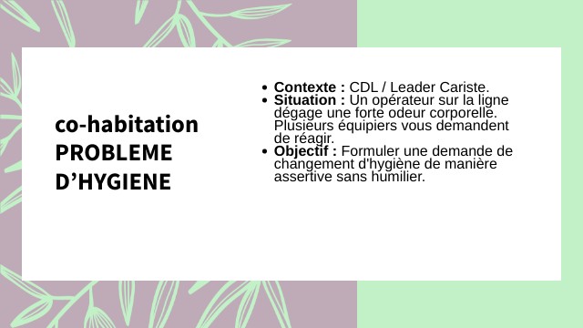 Objectif : Formuler une demande de changement d'hygiène de manière assertive sans humilier.
