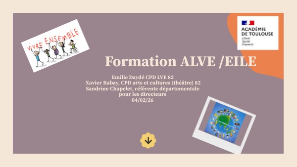 Emilie Daydé CPD LVE 82 Xavier Rabay, CPD arts et cultures (théâtre) 82 Sandrine Chapelet, référente départementale pour les directeurs 04/02/26