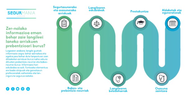 Legearen arabera, langile guztiek informazio argia, behar adinakoa eta egokia jaso behar dute lanpostuan izan ditzaketen arriskuei buruz nahiz eskura dituzten prebentzio-neurriei eta babes-neurriei buruz. Informazio hori eskubidea ez ezik, funtsezko elementua ere bada istripuak eta gaixotasun profesionalak saihesteko eta lan-ingurune segurua izateko.