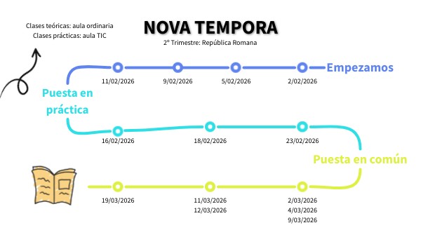 Antes de ponernos a trabajar, tenemos que seleccionar y organizar la información que va a decir cada uno. Temas: - Ley de las XII Tablas - Inicio de las Guerras Púnicas - Cartago: el comienzo de Hispania - Los Graco - ¿Realmente funciona un triunvirato? Agrupamiento: grupal Recursos: Drive (apuntes y vídeos)