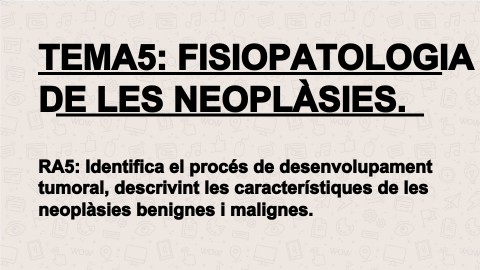 RA5: Identifica el procés de desenvolupament tumoral, descrivint les característiques de les neoplàsies benignes i malignes.