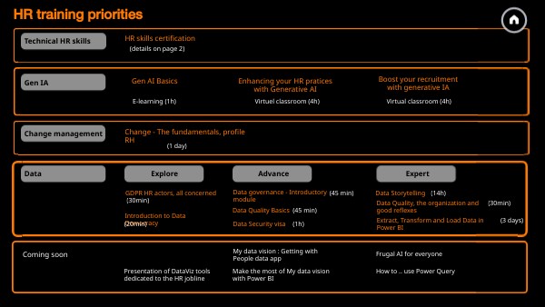 Academy to Innovate Human Resources (AI HR) is an external training organization outside the Orange Group. AIHR offers asynchronous training courses, structured into learning paths that lead to certification. A total of 15 HR certification programs are available. Licenses are purchased by the divisions so for further information and inscription please contact :
