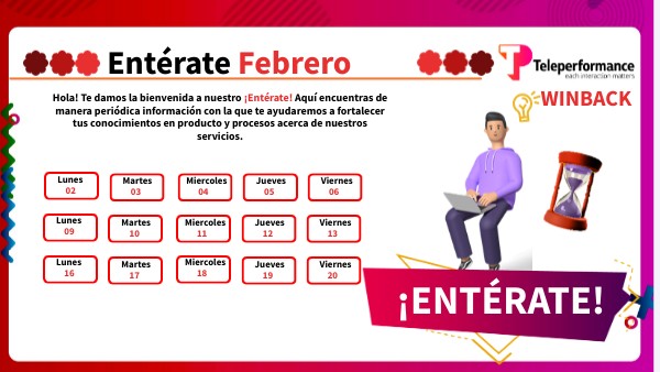 Hola! Te damos la bienvenida a nuestro ¡Entérate! Aquí encuentras de manera periódica información con la que te ayudaremos a fortalecer tus conocimientos en producto y procesos acerca de nuestros servicios.