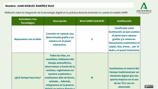 Reflexión sobre la integración de la tecnología digital en tu práctica docente teniendo en cuenta el modelo SAMR