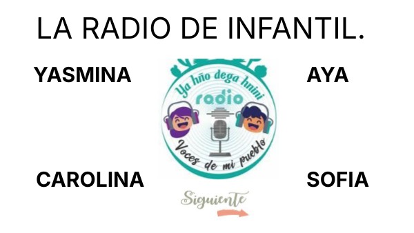 Hola hoy os vamos a presentar nuestra radio de infantil. Y con migo se encuentran CAROLINA, AYA, SOFIA y YASMINA.