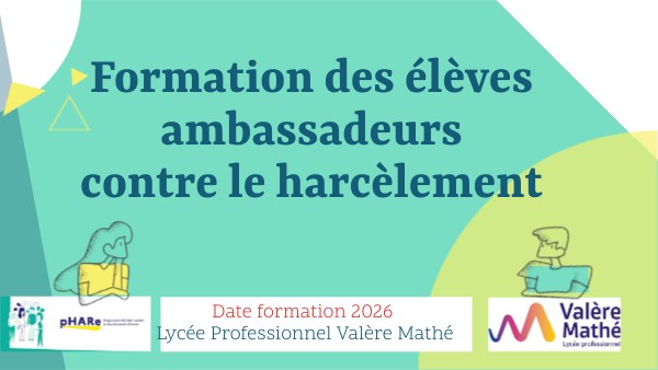 Les objectifs de la formation d'aujourd'hui sont : - comprendre le phénomène de harcèlement, - repérer les comportements pouvant entrainer des situations de harcèlement, - connaitre les postures à adopter en tant qu'ambassadeur - prendre conscience du processus de signalement du protocole PHARE - réflechir aux propositions d'action de prévention - réfléchir à un projet pour le lycée à la rentrée