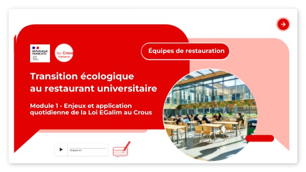 Introduction : ce module e-learning à destination des équipes de restauration s’inscrit dans le cadre d’un parcours global de formation sur la transition écologique au sein du réseau des crous.