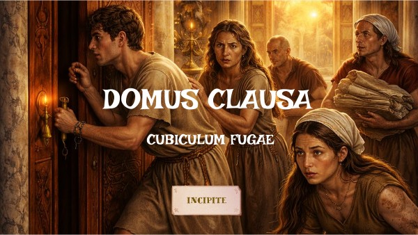 Salvete, discipuli. Nos servi et ancillae sumus. Nos in domo romana sumus. Dominus domo abest. Ianua clausa est. Nos fugere domo volumus. Tempus fugit. Adiuvate nos! .