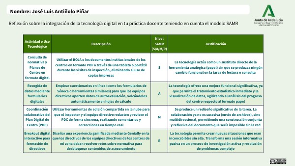 Reflexión sobre la integración de la tecnología digital en tu práctica docente teniendo en cuenta el modelo SAMR