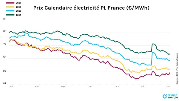 Prix Calendaire électricité PL France (€/MWh)