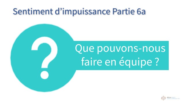 Communiquer à ses collègues le sentiment d’impuissance et la souffrance qu’il engendre. Savoir accueillir le sentiment d’impuissance en équipe.