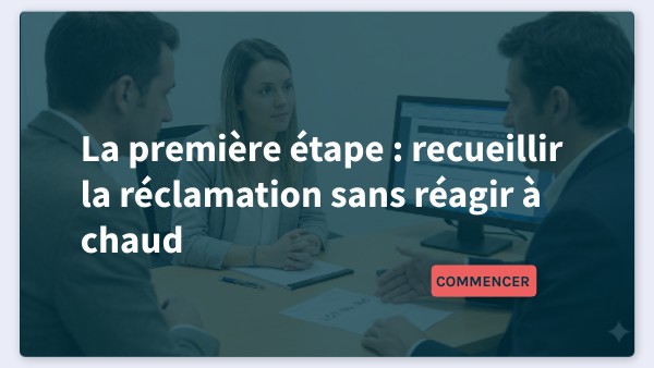 Lorsqu’une réclamation est formulée, la première posture attendue du clerc est une posture de neutralité et d’écoute. Il ne s’agit ni de reconnaître une responsabilité ni de contester immédiatement la demande. Une réaction précipitée ou émotionnelle peut fragiliser la position de l’étude.