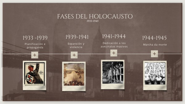 Entre 1933 e 1939 desenvolveuse a fase de planificación e propaganda do Holocausto. Todo comezou cando Adolf Hitler chegou ao poder en Alemaña en 1933 como líder do Partido Nazi. A partir dese momento, o réxime empezou a difundir unha ideoloxía baseada no racismo e no antisemitismo, defendendo que a chamada “raza aria” era superior e que os xudios e outros grupos eran inferiores.Un dos personaxes máis importantes foi Joseph Goebbels, ministro de Propaganda, que utilizou os medios de comunicación, os carteis, os discursos e mesmo a educación para manipular á poboación e fomentar o odio cara aos xudios. Tamén destacou Heinrich Himmler, xefe das SS, que organizou a persecución e o control das persoas consideradas inimigas do réxime. Durante estes anos aprobáronse leis discriminatorias, como as Leis de Núremberg en 1935, que lles quitaron aos xudios os seus dereitos como cidadáns. Ademais, en 1938 produciuse a Noite dos Cristais Rotos, un ataque violento contra tendas, casas e sinagogas xudías, que marcou un aumento claro da violencia. Nesta etapa, os nazis forón preparando á sociedade alemana para aceptar a exclusión, a persecución e a violencia contra millóns de persoas non de raza aria.