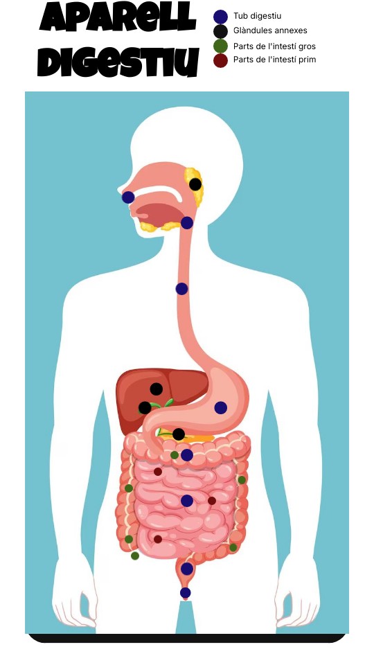 Primera part de l'aparell digestiu.Per on entra el menjar, es produeix la masticació i el bolus alimentici.