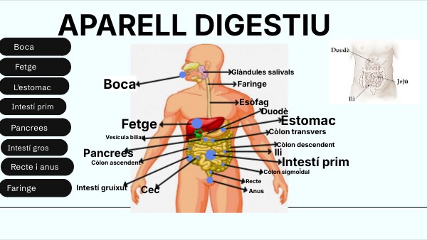 L'intestí prim:En passar a l'intestí prim, la bilis i el suc pancreàtic es barregen amb el suc intestinal, acabant la digestió.