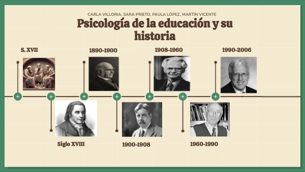 -Pestalozzi(1745-11827): concibe la educacion como un proceso de sederano intento de niño.Reduce la memorizacion y transforma formación -Herbart(1776-1841): introduce la psicología en la educación( charlas "a los profesores).Destaca la importnacia de los intereses. -Alfred Binet y Simon (1905); crean el primer test de inteligencia individual -John Dewey(1859-1952): defiende el aprendizaje por la acción