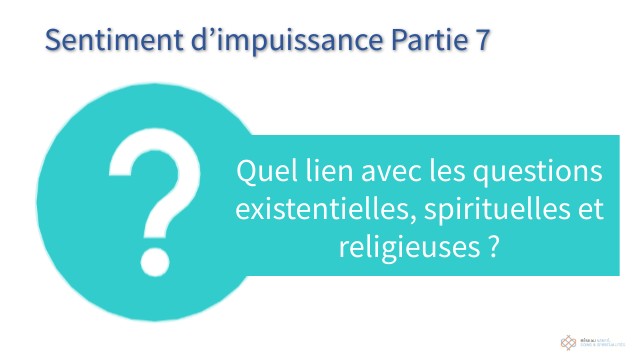 Est-ce que consciemment ou inconsciemment votre attitude face aux situations d’impuissance est en partie liée à votre spiritualité et plus particulièrement à un courant spirituel? Quels aspects souhaiteriez-vous partager en groupe par rapport à cela?