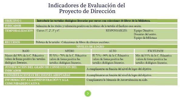 Indicadores de Evaluación del Proyecto de Dirección